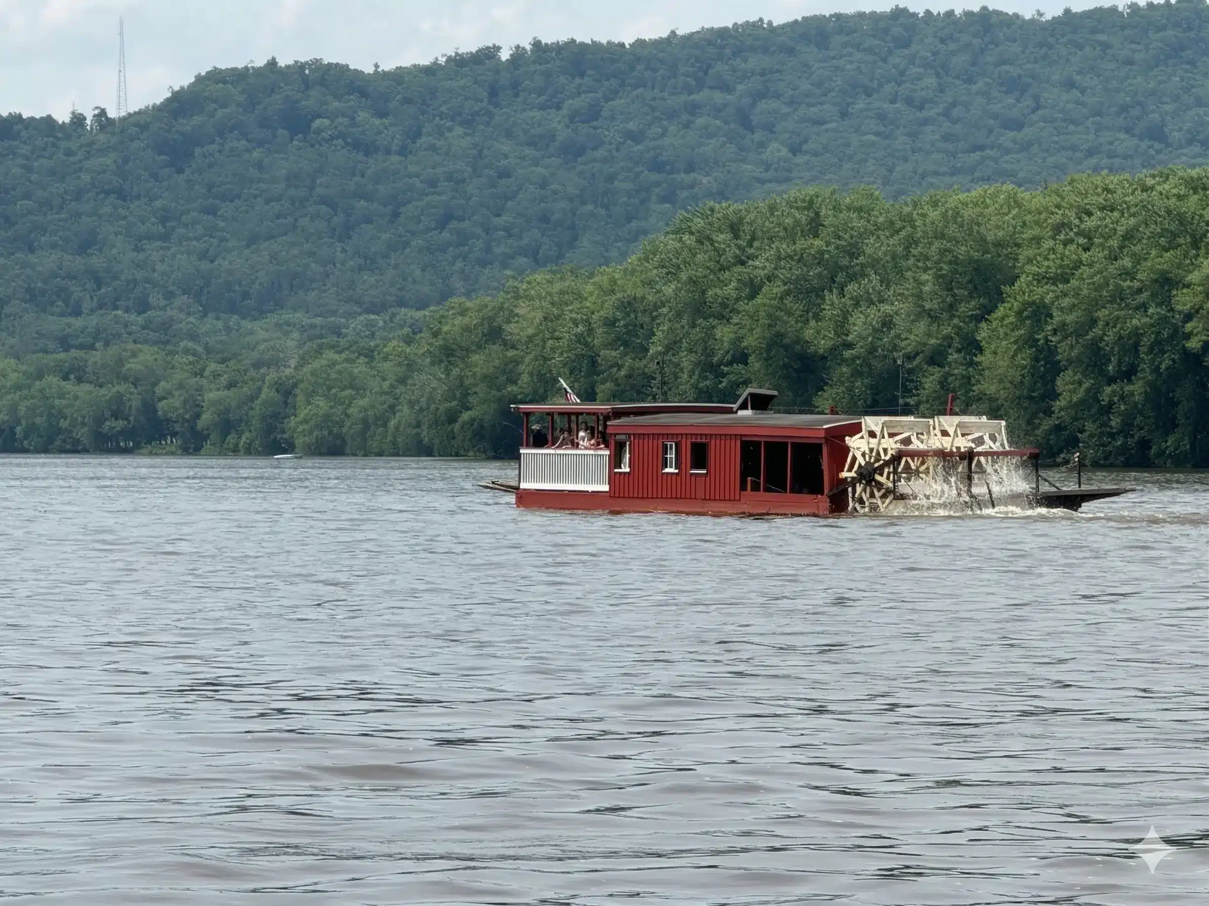 No highway noise. No traffic lights. Just the gentle turning of wooden paddle wheels carrying you across a mile of open water the same way travelers have crossed since James Madison was president.